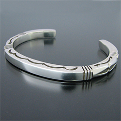 ナバホ族 Jennifer Curtis スタンプワーク No3スクエアワイヤー バングル [R11-192]