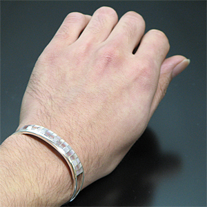 | ZUNI/ズニ族がピンクシェルを用いて制作したチャンネルインレイのバングルです。 シルバーで仕切りの枠を作り、そこへ様々なカッティングを施した石をはめ込んで図柄を完成させる技法チャンネル・インレイで制作されており、非常に繊細で美しい仕上がりとなっています。 見る角度から様々な表情を見せてくれるピンクシェルは、どこかやさしく、見ているだけで癒されます。 シンプルで着けやすいサイズになりますので、飽きることなく、いつまでも愛用して頂ける逸品です! ※サイズ変更は石が外れる可能性がございますので、このままのサイズで着用くださいませ。 | ||