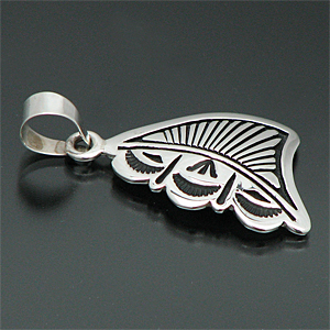 | 数多くの賞を獲得しているNAVAJO/ナバホ族の有名アーティストSteven J. Begay/スティーブン・J・ビゲイが制作したオーバーレイのペンダントトップです。 見ているだけで圧倒されるこちらの作品はホピ族が使用するオーバーレイで制作されており、ホピ族との違いは下地にテクスチャー(模様)を彫らず真っ黒に燻されているだけのシンプルな物がビゲイのオーバーレイ作品で、下地に幾重にも細かいテクスチャーを彫り、黒く燻されている物がホピ族のオーバーレイ作品となります。 非常に美しい銀面仕上げにアーティストのセンスと技術が詰まった素晴らしい作品です! 自然がモチーフに、厚みのある銀本来のズッシリとした重みを感じることができ、シルバーの断面は他のアーティストに比べ非常に滑らかに研磨されています。 また独特のフォルムはいつもの服装に新しいスタイルを取り入れてくれます♪ ※こちらのトップはシルバーチェーンは付いていません。 ※画像のチェーンはホピチェーンになります。 | ||