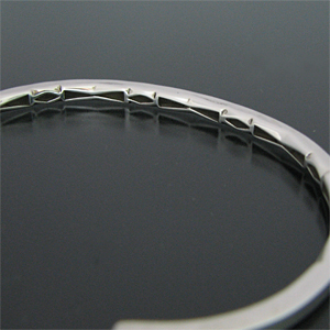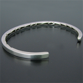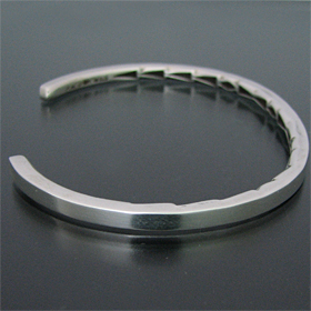 | NAVAJO/ナバホ族の女性アーティスト Jennifer Curtis/ジェニファー・カーティスに制作を依頼したバングルです。 #8スクエアワイヤー(約3mm厚)を使用し、表面はプレーンで、裏側にスタンプワークを施した頂いたRIVER MAIL別注の作品です。 肉厚のシルバーはそのままで、変わらず深く正確なスタンプワークに、ジェニファーの特徴でもあるファイルワーク(やすり掛け)が印象的な作品です。 シンプルに単体でも良いですし、他のバングルと重ねて楽しんで頂くことが出来ます。 | ||