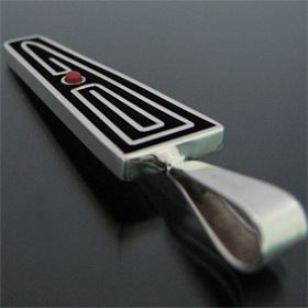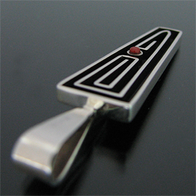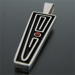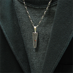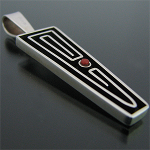| NAVAJO/ナバホ族のアーティスト Albert Nells/アルバート・ネルスに制作を依頼をしたペンダントです。 よりシンプルな作品に仕上がりました。オーバーレイによる美しいラインはそのままで、ワンポイントにコーラルをセットして頂きました。 洗練された落ち着いたデザインはスタイルを選ばず、幅広いコーディネイトがお楽しみ頂ける作品です。 黒と銀のコントラストが印象的で、コーラルがさりげなく主張されています。 | ||