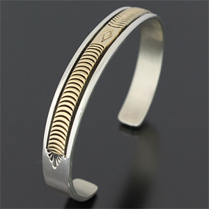 ナバホ族 Bruce Morgan 14K スタンプワーク バングル [R12-131]