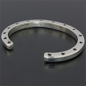 | NAVAJO/ナバホ族のアーティスト Sunshine Reeves/サンシャイン・リーブスに制作を依頼したバングルです。 角を落とす事によって丸みを持たせたRIVER MAIL別注です。側面のデザインはスター/スターになります。 柔らかい着け心地に着用したときの存在感、厚みは約5.5mmと申し分なく、他のバングルと重ね着けされてもバランス良くスタイルをお楽しみ頂けます。 洗練されたシンプルさ、簡素な中に美を感じる作品です。 | ||