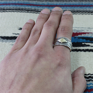 ナバホ族 Pat Bedonie サンバースト 14K 1/2 リング 19.5号 [R12-001]