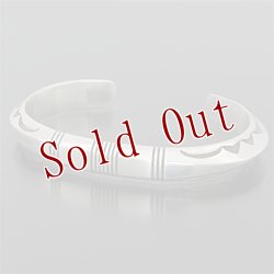 | NAVAJO/ナバホ族の女性アーティスト Jennifer Curtis/ジェニファー・カーティスに制作を依頼したバングルです。 RIVER MAILの別注から生まれたデザインです。トライアングルワイヤーをベースに、トップはワイヤーを叩いて平面に仕上がっています。 重厚感あるフォルムにスタンプとラインを施して頂いたシンプルなデザインですが、単体でもその存在感は引き立ち、他のバングルと重ね着けしても相性が良く、様々なスタイルをお楽しみ頂ける作品です。 | ||