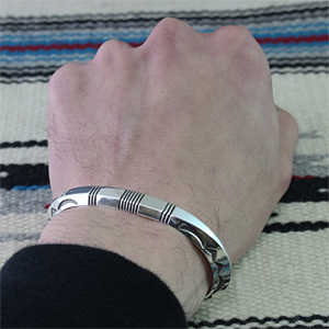 ナバホ族 Jennifer Curtis スタンプワーク トライアングルワイヤー バングル [R12-159]