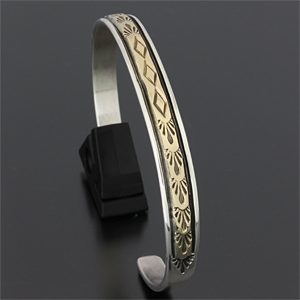 ナバホ族 Bruce Morgan 14K スタンプワーク 1/4 バングル [R13-013]