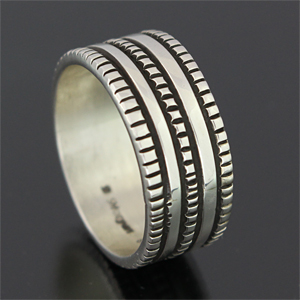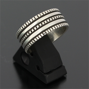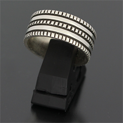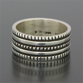 | NAVAJO/ナバホ族のアーティスト Bruce Morgan/ブルース・モーガンに制作を依頼したリングです。 RIVER MAILの別注から生まれたシンプルでクラシックなチゼルワークによる作品です。 素朴ですがスタイルを選ばない着けやすさは、初めての方でも気軽にお楽しみ頂けます。 | ||