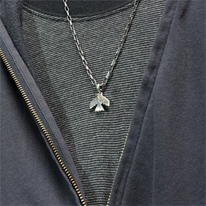| NAVAJO/ナバホ族のアーティスト Sunshine Reeves/サンシャイン・リーブスに制作を依頼したペンダントです。 イーグルデザインのプチペンダントです。 さりげなくインディアンジュエリーをアピール出来るサイズ感で、シンプルに1つでお使い頂いても良いですし、他のペンダントと重ね着けが出来る遊び心もございます。 チェーンはホピチェーン極細と相性良くお使い頂けます。 | ||