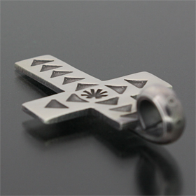 | NAVAJO/ナバホ族のアーティスト Sunshine Reeves/サンシャイン・リーブスに制作を依頼したペンダントです。 クロスデザインのプチペンダントです。 さりげなくインディアンジュエリーをアピール出来るサイズ感で、シンプルに1つでお使い頂いても良いですし、他のペンダントと重ね着けが出来る遊び心もございます。 チェーンはホピチェーン極細と相性良くお使い頂けます。 | ||