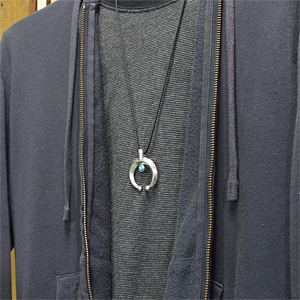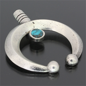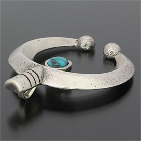 | NAVAJO/ナバホ族のアーティスト Darryl Begay/ダリル・ビゲイに制作を依頼したペンダントです。 ナバホジュエリーを代表するデザインのナジャです。石はビズビーがセットされています。 トゥーファーストーンによる質感を残しつつ磨きがかかった鈍い光沢が印象的で、石とのバランスが絶妙に仕上がっています。 革紐、シルバーチェーン、コットンレース問わず、相性良くお使い頂けます。 | ||