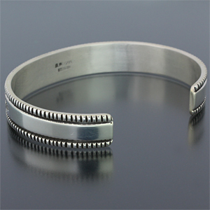| NAVAJO/ナバホ族のアーティスト Bruce Morgan/ブルース・モーガンに制作を依頼したバングルです。 シンプルながらも深く正確なスタンプワーク、こちらはバグデザインのトラディショナルな作品です。 スタイルを選ばない着けやすさはもちろん、インディアンジュエリーが初めての方でも気軽にお楽しみ頂けます。 | ||
