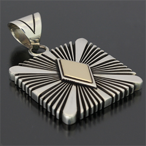 ナバホ族 Pat Bedonie サンバースト 14K スクエア ペンダント [R14-003]