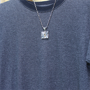 | NAVAJO/ナバホ族の女性アーティスト Patricia Bedonie/パトリシア・べドニーに制作依頼をしたペンダントです。 中心から外側に向かって大きく広がるサンバースト(太陽光線)をイメージした代表的作品です。 ダイヤ型のパーツは14Kとシルバーの組合せになり、10ゲージのフラットワイヤーを使用した約2.5mm厚のペンダントです。 美しいラインは正面だけでなく側面にも施されており、凹凸のある立体的な作品です。 男女問わずスタイルを選ばない安定感のある着けやすをお楽しみ頂けます。 | ||