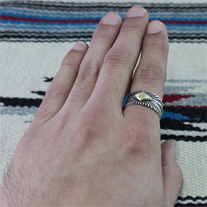 ナバホ族 Pat Bedonie サンバースト 14K 3/8 リング 18号 [R16-048]