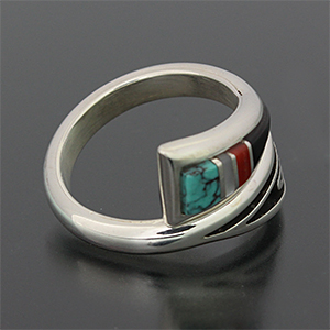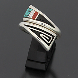 | NAVAJO/ナバホ族のアーティスト Albert Nells/アルバート・ネルスに制作を依頼をしたリングです。 インレイとオーバーレイを組合わせた代表的デザインでのオーダーです。 スタイルを問わない安定した着け心地をお楽しみ頂ける作品です。 | ||