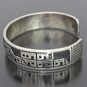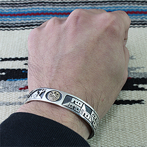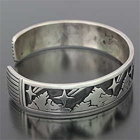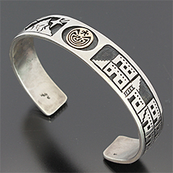 | HOPI/ホピ族のアーティスト Jason Takala/ジェイソン・タカラに制作を依頼をしたバングルです。 長く愛されている代表的モチーフのメイズは14Kで制作されており、サイドはビレッジ&流星のデザインを入れて頂きました。 昔から変わらないスタイル、どこか安心します。 経年変化による風合いが楽しみです。 | ||