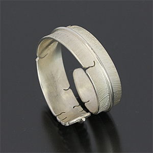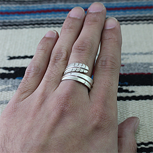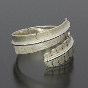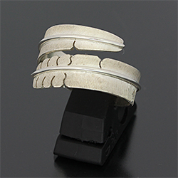 | ISLETA/イスレタ族のアーティスト Michael Kirk/マイケル・カークに制作を依頼をしたリングです。 フェザーの風合いを出すために細いたがねを用いて線を付けていき、本物のフェザーのように躍動感のある作品に仕上げられています。 インディアンジュエリーを代表する人気モチーフの一つです。 | ||