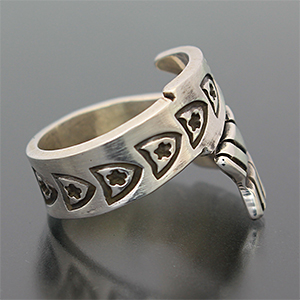 | NAVAJO/ナバホ族のアーティスト Bo Reeves/ボー・リーブスに制作依頼をしたリングです。 アローデザインの指に巻きつくイメージのリングです。アジャスタブルタイプになりますので、多少サイズ調整も可能です。 初心者の方でも幅広くお使い頂けるアイテムです。 | ||