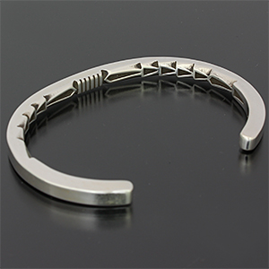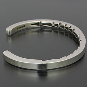 | NAVAJO/ナバホ族の女性アーティスト Jennifer Curtis/ジェニファー・カーティスに制作を依頼したバングルです。 #6スクエアワイヤー(約4mm厚)を使用した作品で、裏側にスタンプワークを施した頂いたRIVER MAILの別注になります。 肉厚のシルバーに、変わらず深く正確なスタンプワーク、ジェニファーの特徴でもあるファイルワーク(やすり掛け)が印象的な作品です。 シンプルに単体でも良いですし、他のバングルと重ねて楽しんで頂くことが出来ます。 | ||