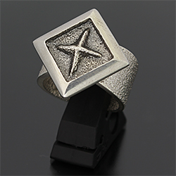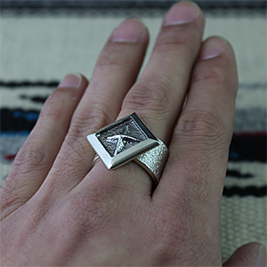 | NAVAJO/ナバホ族のアーティスト Monty Claw/モンティー・クローに制作を依頼したリングです。 トゥーファーキャストによる立体的なデザインと特徴のある質感が印象的です。 角は内側、外側と程よく落とされているため、指当たりの良い着け心地です。 | ||