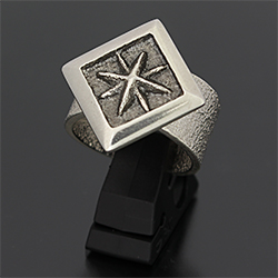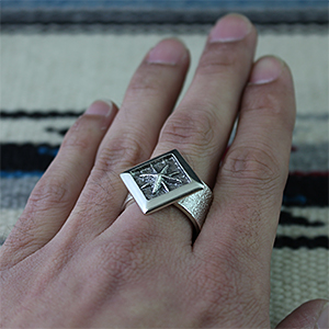 | NAVAJO/ナバホ族のアーティスト Monty Claw/モンティー・クローに制作を依頼したリングです。 トゥーファーキャストによる立体的なデザインと特徴のある質感が印象的です。 角は内側、外側と程よく落とされているため、指当たりの良い着け心地です。 | ||
