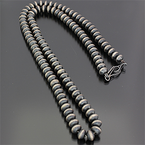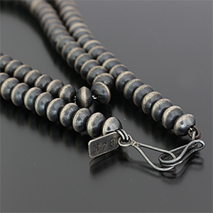 | NAVAJO/ナバホ族のハンドメイドビーズチェーンです。 手作りによるビーズを繋ぎ合わせたナバホスタイルです。 燻しによるアンティークな雰囲気が印象的で、そろばん型の幅約7mmのサイズとなっております。 | ||