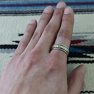 ナバホ族 Bruce Morgan スタンプワーク 14K 1/4 リング 20.5号 [R16-143]