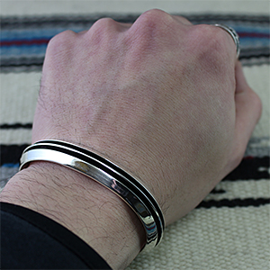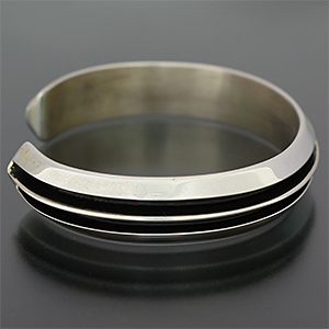| NAVAJO/ナバホ族のアーティスト Tom Hawkが制作した1ラインのバングルです。 銀と黒のコントラストが際立つ、シンプルでスタイルを問わないストレートタイプです。 美しいラインが印象的で、どなたでもお楽しみ頂ける作品です。 | ||