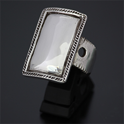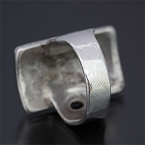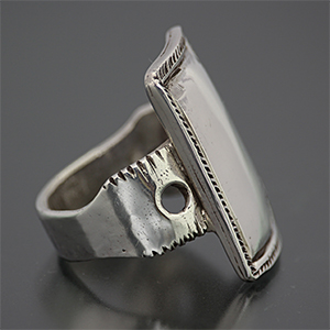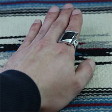 | Dyaami Lewis/ディアミ・ルイスに制作を依頼したリングです。 地金は昔ながらの制作技法インゴットシルバーによるもので、独特な重量感と綺麗すぎない上品さがあり、固くなめらかなシルバーの表情があります。 シールド部分は中央に向かって膨らんでいるため、平面とは違って立体感があります。 デザインはシールドをイメージした古い時代の作品を元にしています。 | ||