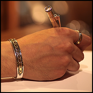 | NAVAJO/ナバホ族のアーティスト Bruce Morgan/ブルース・モーガンに制作を依頼したバングルです。 シンプルながらも深く正確なスタンプワーク、こちらのデザインはダイヤにります。 センターラインは14Kを使用しているため高級感があり、スタイルを選びませんので様々な場面でお使い頂けます。 単体でも他のバングルとの重ね着けにも相性良くお楽しみ頂けます。 | ||