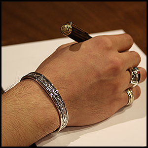 ナバホ族 Bruce Morgan スタンプワーク 3/8 バングル メンズ M [R20-127]