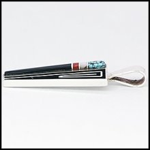 | NAVAJO/ナバホ族のアーティスト Albert Nells/アルバート・ネルスに制作を依頼をしたペンダントです。 インレイワークによって生みだされた、落ち着いた品のある石の配色に、銀と黒のコントラストが飾りすぎず、バランスの良い作品に仕上がっております。 スタイルの幅を広げてくれるペンダントです。 | ||