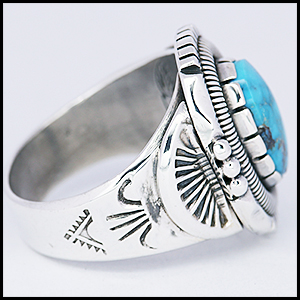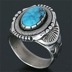 | NAVAJO/ナバホ族のアーティスト Will Vandever/ウィル・バンデバーに制作を依頼したリングです。 石の魅力を最大限に引き出したワイヤーワーク、石はモレンシ(ターコイズ)を使用しています。 シンプルでありながら重厚感の感じられる作品です。 | ||