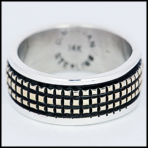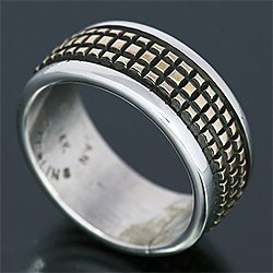 | NAVAJO/ナバホ族のアーティスト Bruce Morgan/ブルース・モーガンに制作依頼をしたリングです。 シンプルながらも深く正確なスタンプワーク、こちらはRIVER MAILオリジナルデザインになります。 センターは14Kを使用しているため高級感があり、スタイルを選びませんので様々な場面でお使い頂けます。 | ||