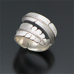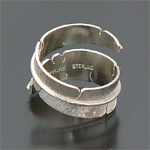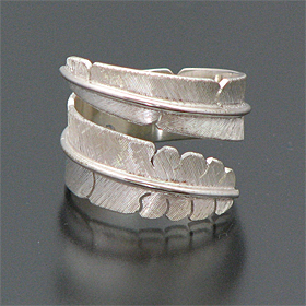 | ISLETA/イスレタ族の有名アーティスト Michael Kirk/マイケル・カークが制作したリングです。 マイケル・カーク(Michael kirk)氏は数多くのジュエリー賞に輝く、イスレタ族の有名アーティストです。 現在もハンドメイドにこだわり、彫刻刀1本で見事に表現された彼のイーグル・フェザーには本物のフェザーのような、見事な仕上がりで、見るものを魅了します。 イーグルフェザーには、人の精神を癒す力があると言われており、「天と地」「神と人間」を繋ぐ大切な役割をするメッセンジャーという意味があります。 ※多少のサイズ変更は可能ですのでお気軽にお問い合わせくださいませ。 | ||