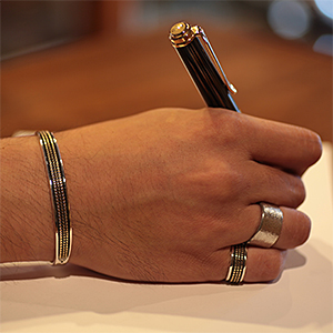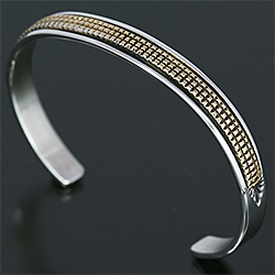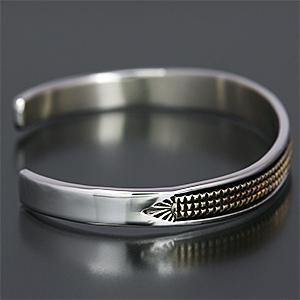 | NAVAJO/ナバホ族のアーティスト Bruce Morgan/ブルース・モーガンに制作を依頼したバングルです。 シンプルながらも深く正確なスタンプワーク、こちらはRIVER MAIL別注デザインになります。 センターラインは14Kを使用しているため高級感があり、スタイルを選びませんので様々な場面でお使い頂けます。 単体でも他のバングルとの重ね着けにも相性良くお楽しみ頂けます。 | ||