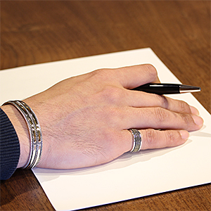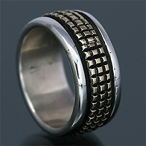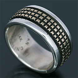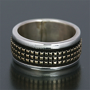 | NAVAJO/ナバホ族のアーティスト Bruce Morgan/ブルース・モーガンに制作依頼をしたリングです。 シンプルながらも深く正確なスタンプワーク、こちらはRIVER MAILオリジナルデザインになります。 センターは14Kを使用しているため高級感があり、スタイルを選びませんので様々な場面でお使い頂けます。 | ||