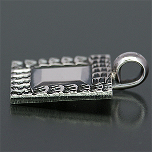 | NAVAJO/ナバホ族のアーティスト Sunshine Reeves/サンシャイン・リーブスに制作を依頼したペンダントです。 約2mmの厚みのあるスクエア型のシルバーに、シンプルにスタンプワークを施して頂きました。 単体でさりげなくお使い頂くのにもお勧めですし、他のペンダントと重ねてお使い頂けます。 | ||