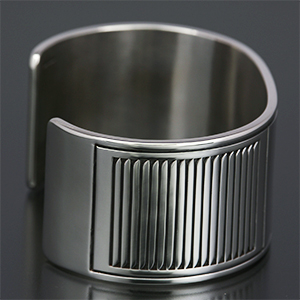 | NAVAJO/ナバホ族のアーティスト Howard Nelson/ハワード・ネルソンに制作を依頼したバングルです。 デザインは両サイドにフェザー、センターはプレーンで仕上げて頂いています。 トータルバランスを考えて制作して頂きましたが、上品でクリーンなスタイルを表現して頂きました。 内側の両エンドにFour Starのデザインが入ります。 | ||