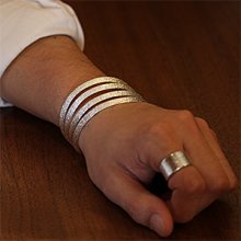 | NAVAJO/ナバホ族のアーティスト Darryl Dean Begay/ダリル・ディーン・ビゲイに制作を依頼したバングルです。 トゥーファーキャストによる質感を活かした作品ですが、、素材の良さだけで存分に堪能して頂けます。 また、断面は三角形になるように仕上げれています。 しっかりとした着け心地と、存在感を感じつつも落ち着いた印象を与えてくれるシンプルでクリーンなバングルです。 | ||