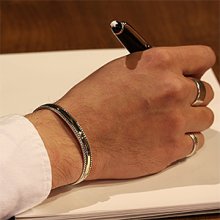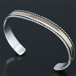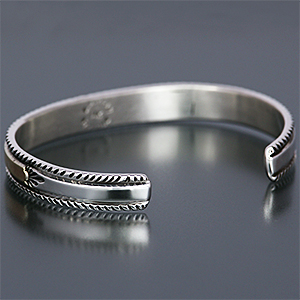 | NAVAJO/ナバホ族のアーティスト Bruce Morgan/ブルース・モーガンに制作を依頼したバングルです。 RIVER MAILの別注から生まれたチゼルワークによる作品です。 センターラインは14Kを使用しているため高級感があり、スタイルを選びませんので様々な場面でお使い頂けます。 単体でも他のバングルとの重ね着けにも相性良くお楽しみ頂けます。 | ||