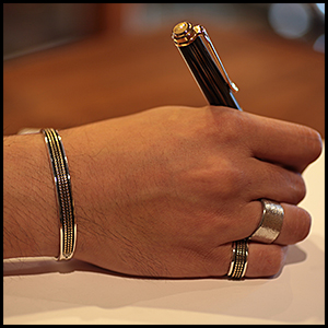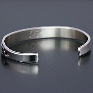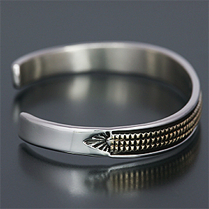 | NAVAJO/ナバホ族のアーティスト Bruce Morgan/ブルース・モーガンに制作を依頼したバングルです。 シンプルながらも深く正確なスタンプワーク、こちらはRIVER MAIL別注デザインになります。 センターラインは14Kを使用しているため高級感があり、スタイルを選びませんので様々な場面でお使い頂けます。 単体でも他のバングルとの重ね着けにも相性良くお楽しみ頂けます。 | ||