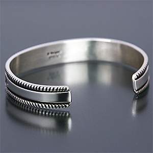 | NAVAJO/ナバホ族のアーティスト Bruce Morgan/ブルース・モーガンに制作を依頼したバングルです。 RIVER MAILの別注から生まれたチゼルワークによる作品です。 スタイルを選ばない着けやすさはもちろん、インディアンジュエリーが初めての方でも気軽にお楽しみ頂けます。 単体でも他のバングルとの重ね着けにも相性良くお使い頂けます。 | ||