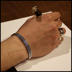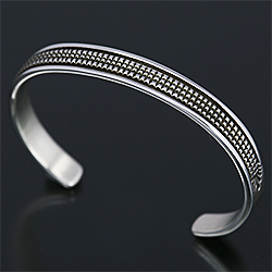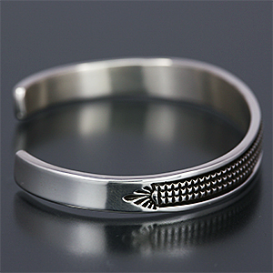 | NAVAJO/ナバホ族のアーティスト Bruce Morgan/ブルース・モーガンに制作を依頼したバングルです。 シンプルながらも深く正確なスタンプワーク、こちらはRIVER MAIL別注デザインになります。 スタイルを選ばない着けやすさはもちろん、インディアンジュエリーが初めての方でも気軽にお楽しみ頂けます。 単体でも他のバングルとの重ね着けにも相性良くお使い頂けます。 | ||