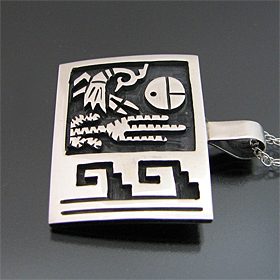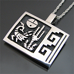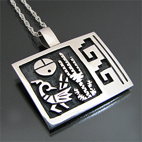 ホピ族 Vern Mansfield サンフェイス ロードランナー スクエア ネックレス [HN-0019]