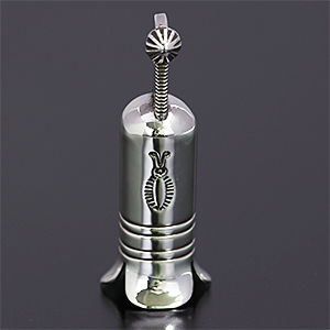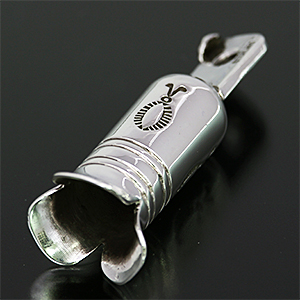 | NAVAJO/ナバホ族のアーティスト Clendon Pete/クレンドン・ピートに制作を依頼したペンダントです。 スカッシュブロッサムをモチーフにした作品、ナジャのネックレスなどに使用されているかぼちゃの花をイメージしています。 立体的で美しい造形美に落ち着いたスタンプワーク、上質感を感じさせる静かな作品となります。 | ||