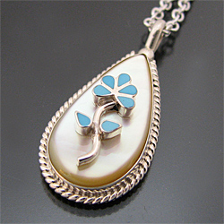 ズニ族 Lamar Lasiloo フラワー イエローシェル インレイ ネックレス [ZN-0028]