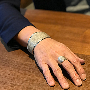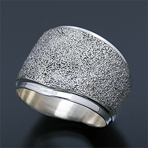 | Hopi/ホピ族のアーティスト Marlin Honhongva/マーリン・ホンホングヴァに制作依頼をしたリングです。 素朴な風合いはシンプルで強い意味や主張を感じさせないデザイン、多くのスタイルに違和感なく馴染みやすい作品です。 シルバープレートに銀粉を焼き付けて独特の表情を演出しています。 | ||