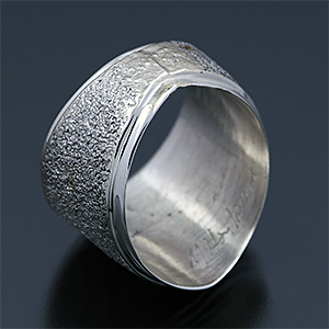 | Hopi/ホピ族のアーティスト Marlin Honhongva/マーリン・ホンホングヴァに制作依頼をしたリングです。 素朴な風合いはシンプルで強い意味や主張を感じさせないデザイン、多くのスタイルに違和感なく馴染みやすい作品です。 シルバープレートに銀粉を焼き付けて独特の表情を演出しています。 | ||